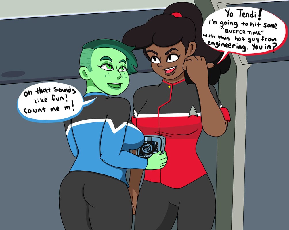 Mariner and Tendi enjoy there buffer time with a fellow lower decker.